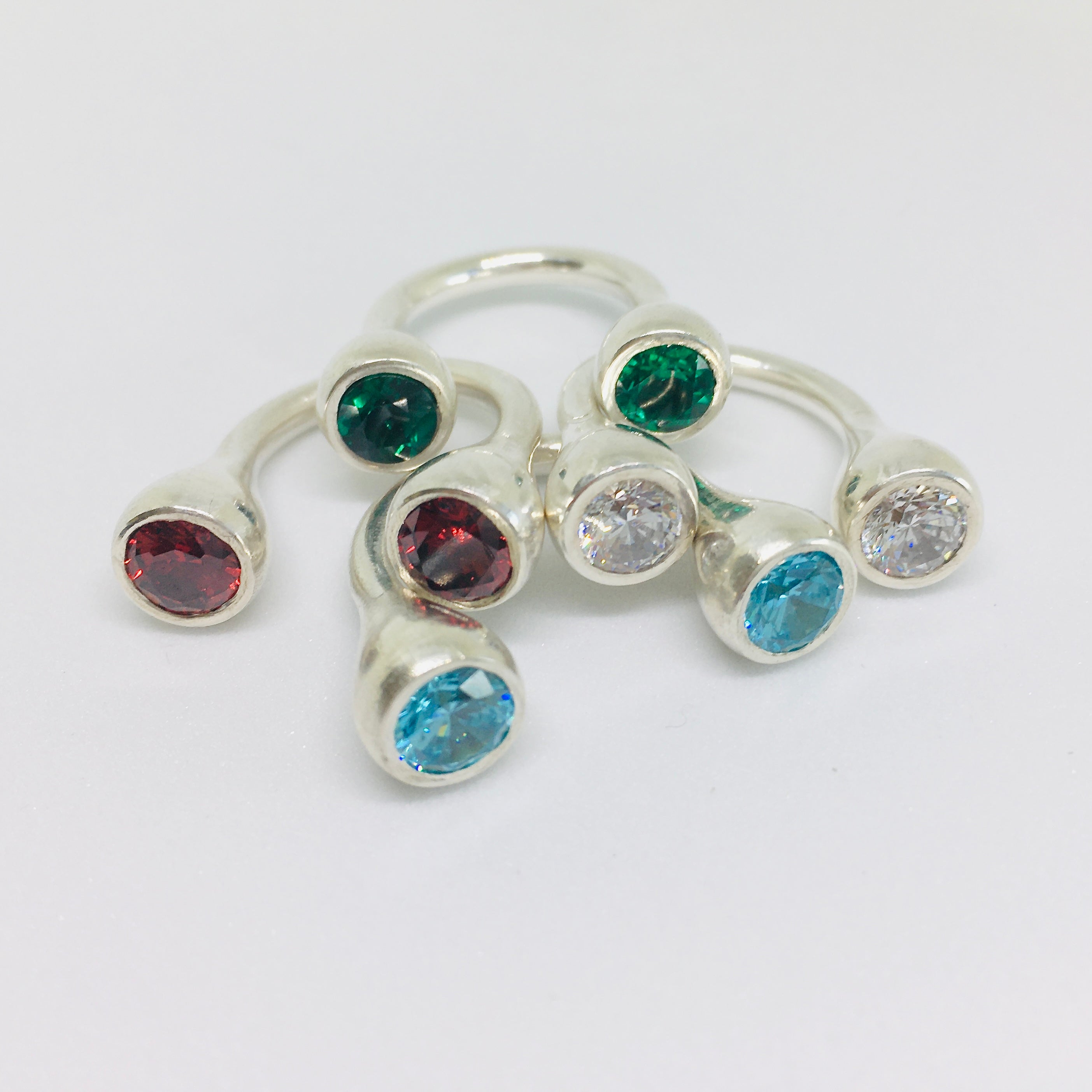 Crescent Stone Sterling Silver Ring with Cubic Zirconias